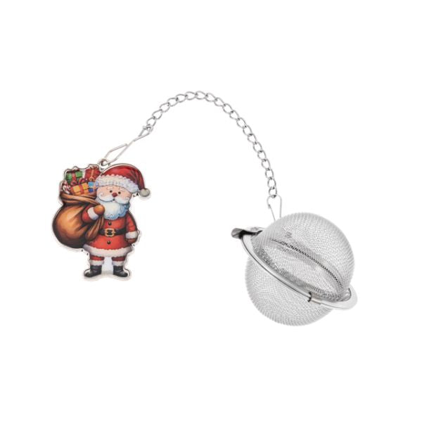 Festive fine-mesh tea infuser ball featuring an adorable Santa charm.
