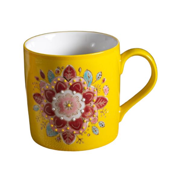 This ceramic mug represents the third chakra which is the Manipura chakra, also known as the solar plexus chakra or navel chakra.