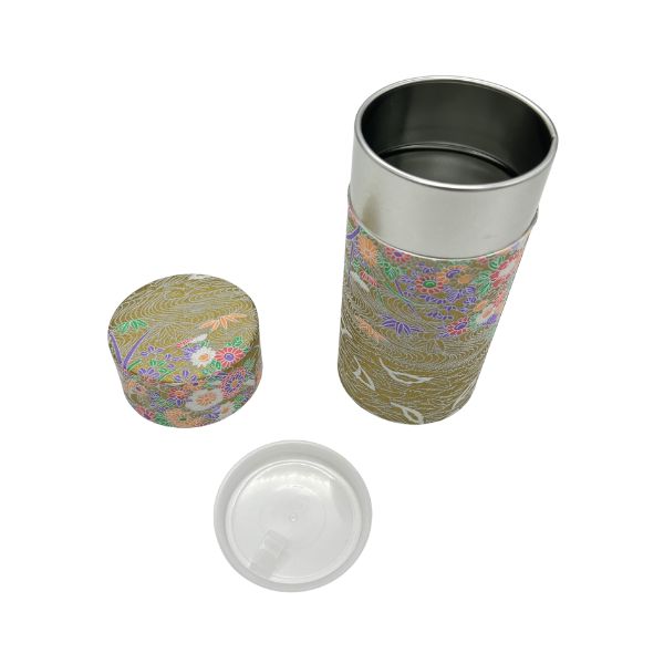 Elegant Asian-inspired canister featuring an air-tight outer metal lid and food-grade inner lid to preserve loose tea.