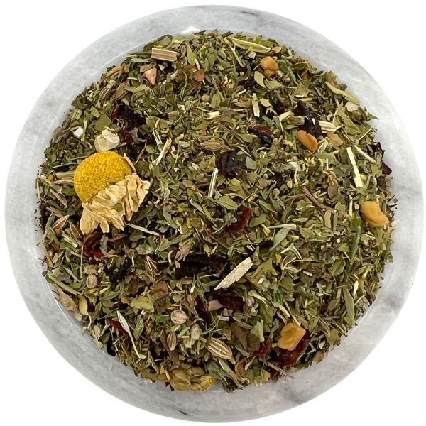 Rosehips, Alfalfa Leaf, Hibiscus, Peppermint Leaf, Fenugreek, Anise, Chamomile & Herbs.