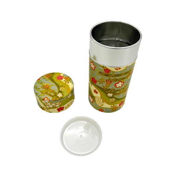 Elegant Asian-inspired canister featuring an air-tight outer metal lid and food-grade inner lid to preserve loose tea.